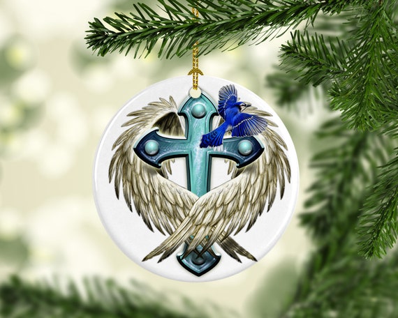Porcelain Cross Angel Wings Christmas Ornament Bluejay Fly Etsy