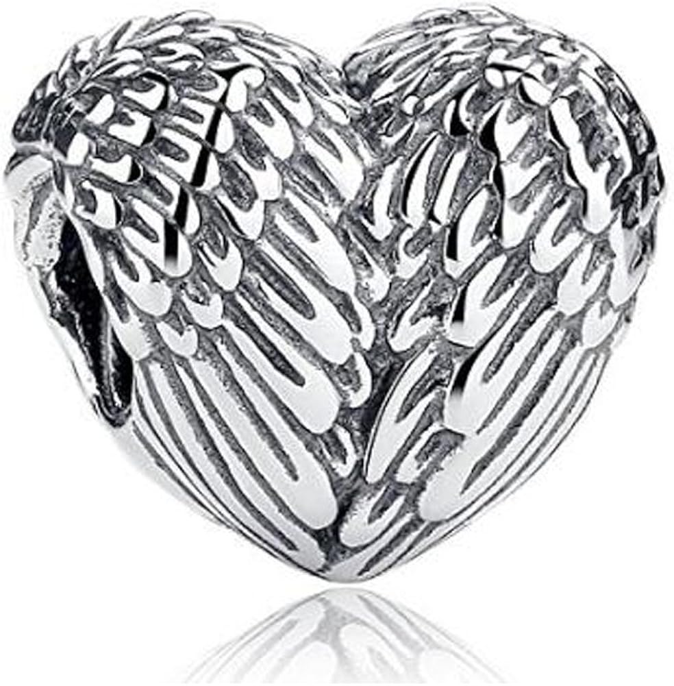925 Sterling Silver Feathers Angel Wing Heart Shape Charm Bead Fit