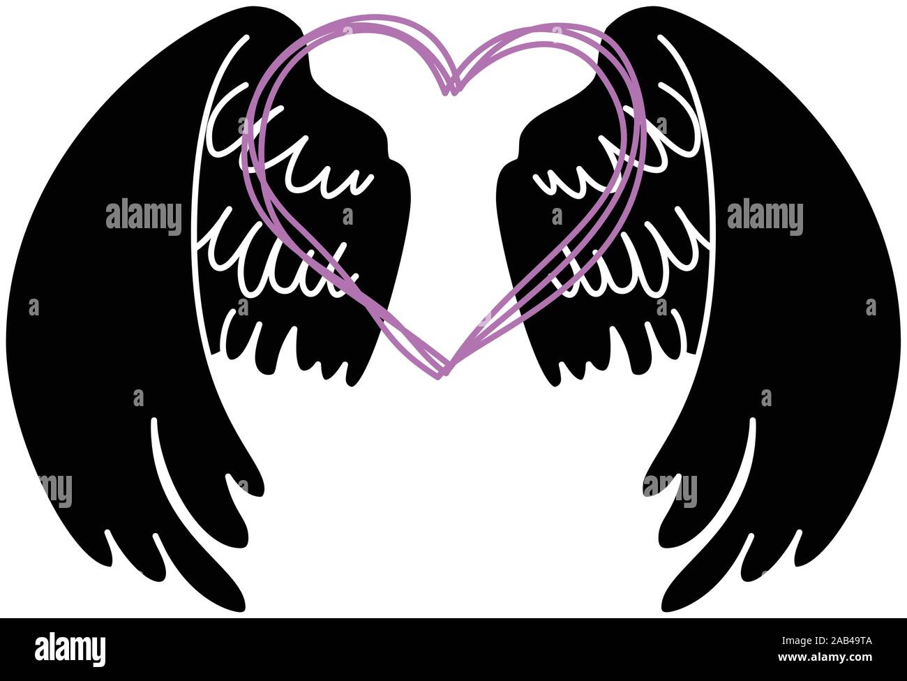 Line Art Of Angel Wings And Heart Royalty Free Vector Image
