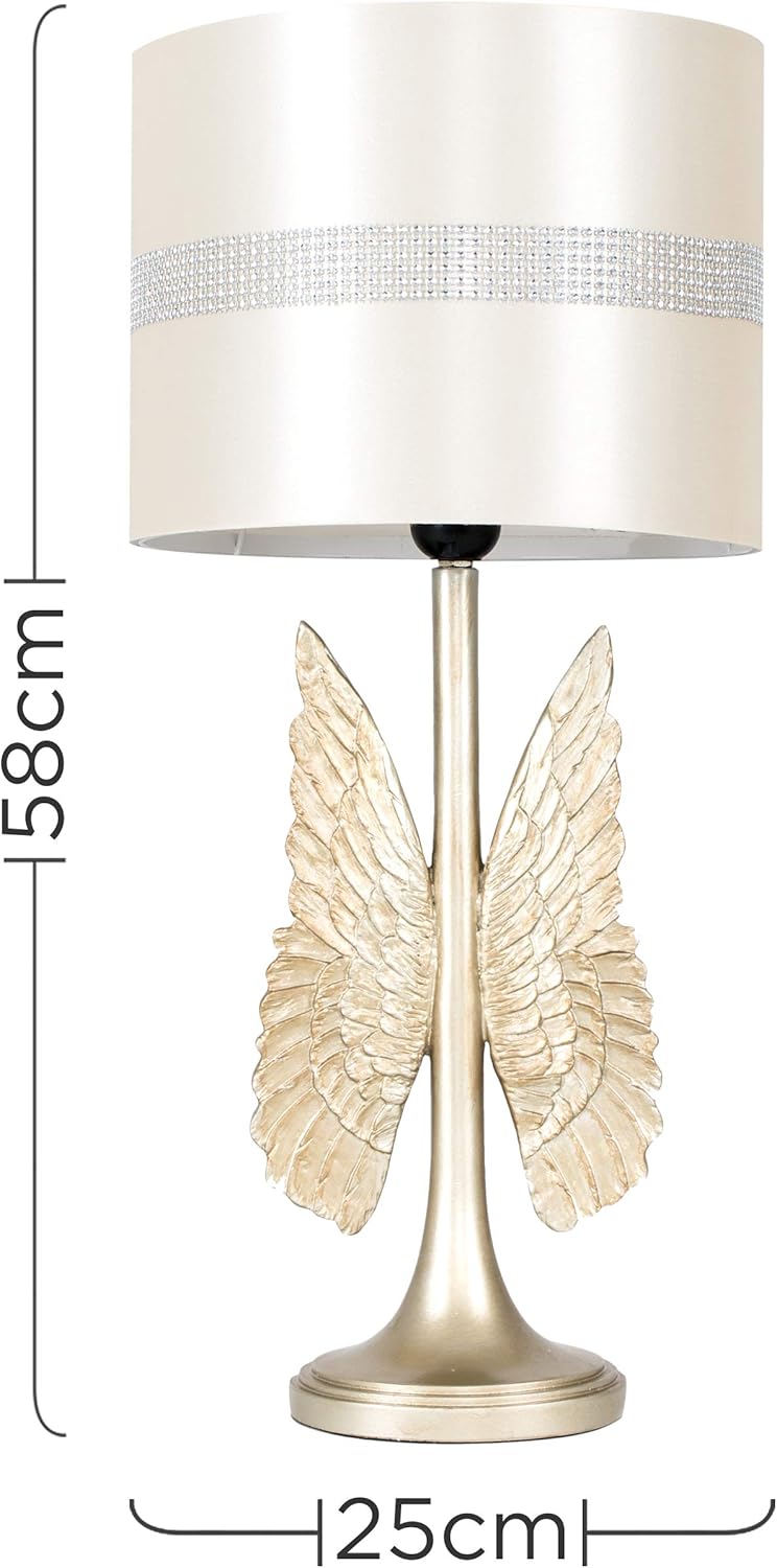 Elegant Champagne Coloured Table Lamp Adorned With Angel Wings