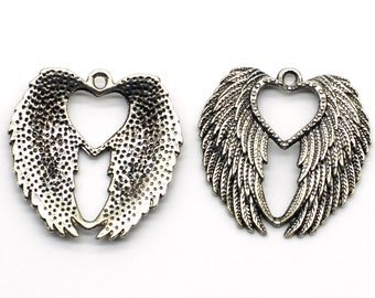 20 Sleek Winged Heart Beads Silver 25mm 41561 Bulk By Beadgiant
