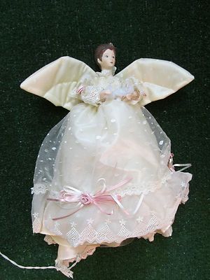 Vintage Christmas Tree Topper Roman Inc Angel Wings Porcelain