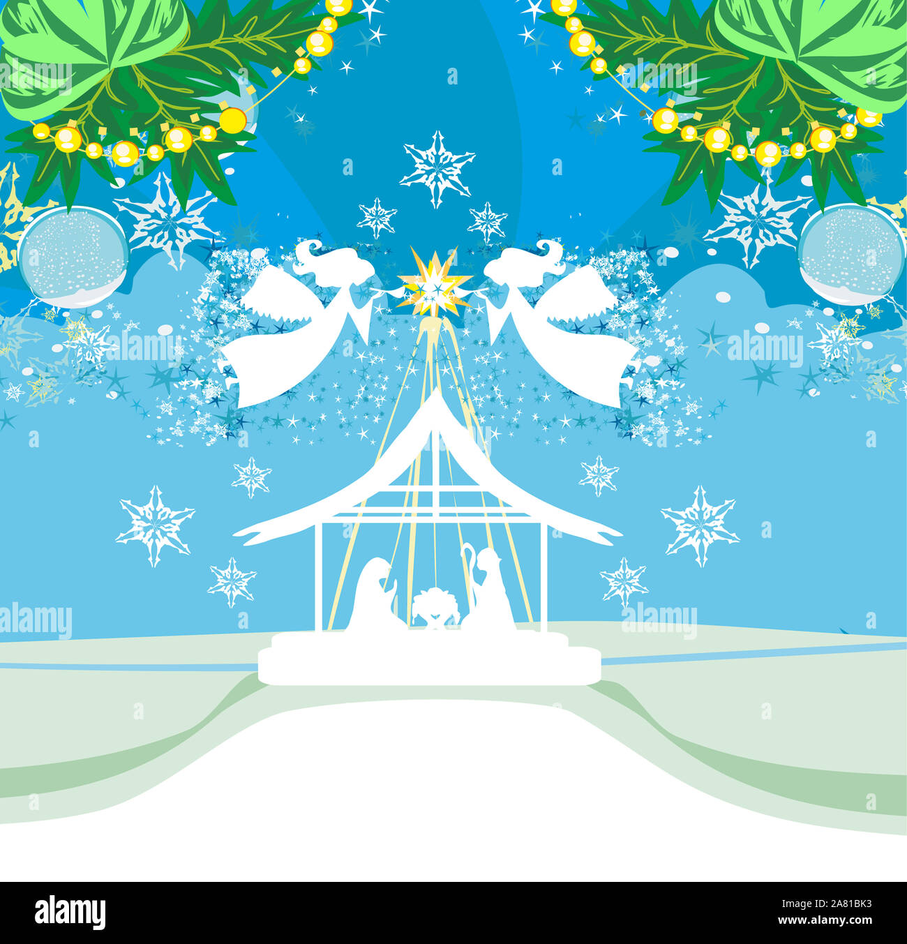 Christmas Nativity Scene Holy Family And Angels Stock Illustration