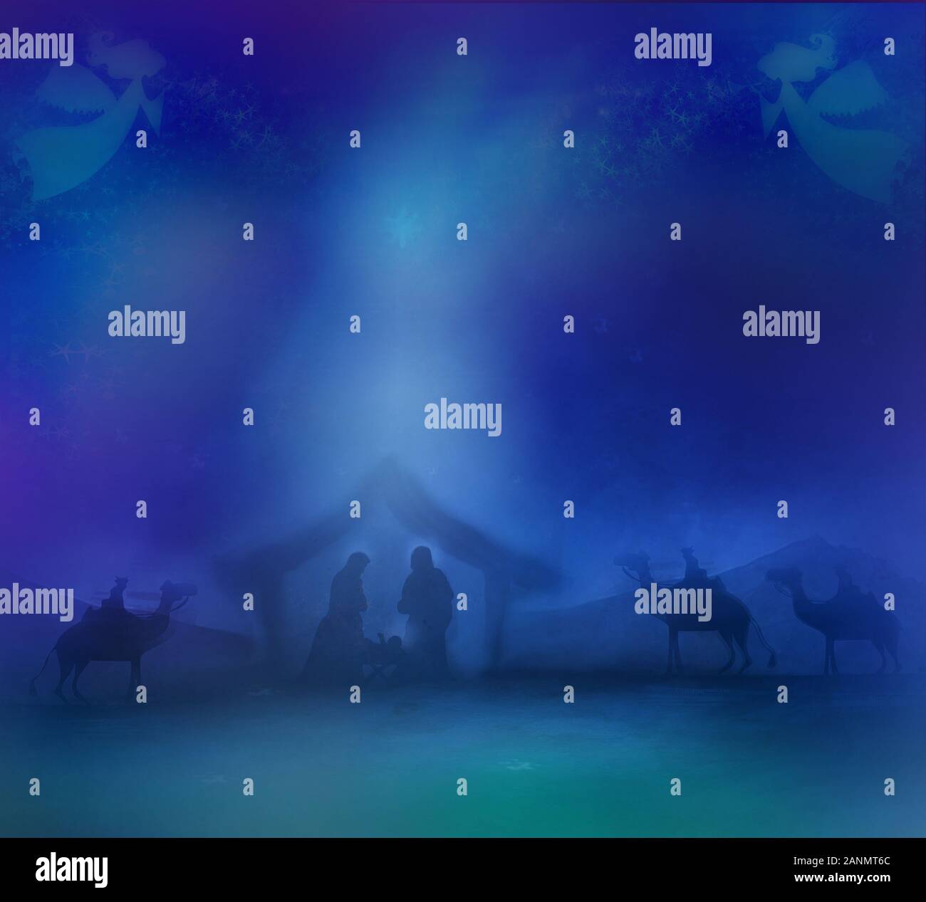 Christmas Religious Nativity Scene With Angels Stock Photo Alamy