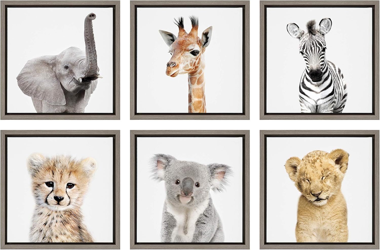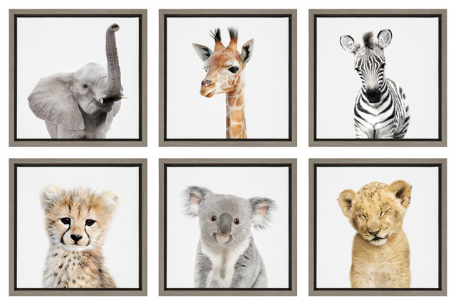 Sylvie 6 Pack Zoo Animal Framed Canvas Art Set Gray 6 Piece