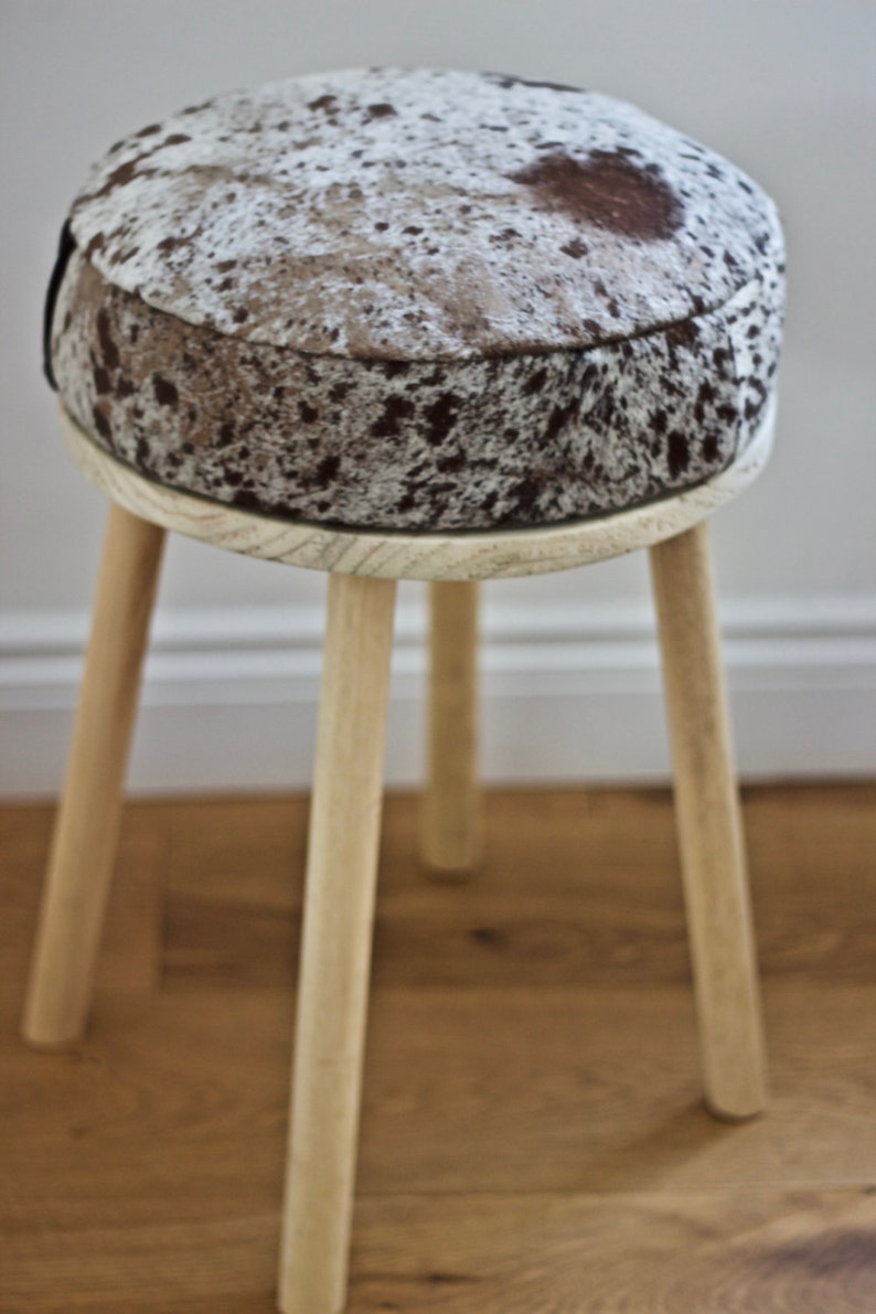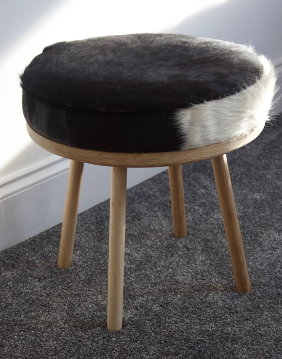 Round Cowhide Stool Oak Cowhide Stool Animal Print Stool Etsy