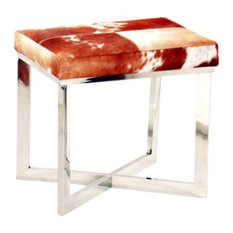 Joseph Allen Home Safari Cow Hide Mahogany Vanity Stool Leopard Print Leather Accent Stool