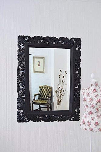 Antique Look Black Ornate Wooden Large Wall Mirror Image