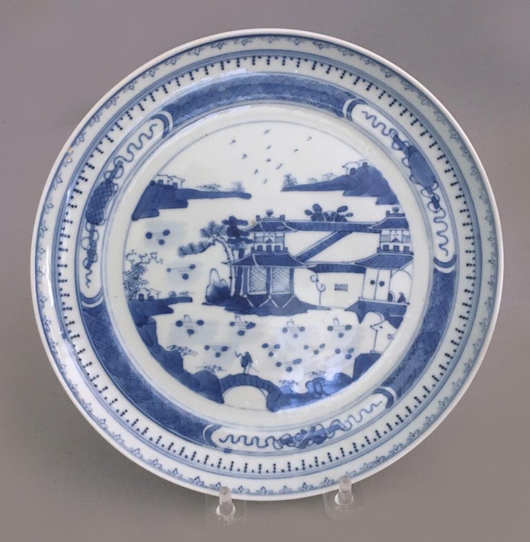 5 Antique Canton Ware Chinese Export Blue And White Plates Ebay