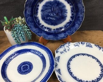 Blue White Vintage China Plates In Assorted Patterns