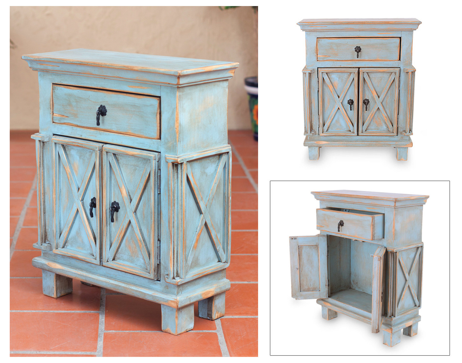 Handmade Rustic Wood Cabinet Furniture From Mexico Antique Blue