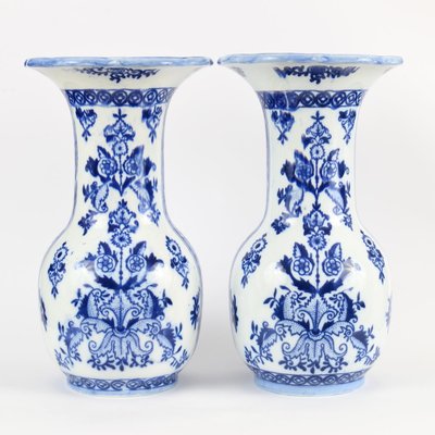 19th Century Blue And White Ceramic Vases From Petrus Regout Set