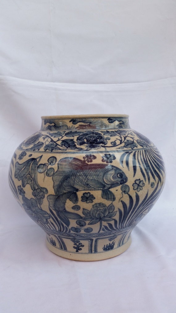 Chinese Antique Blue And White Porcelain Ming Dynasty Vase Etsy