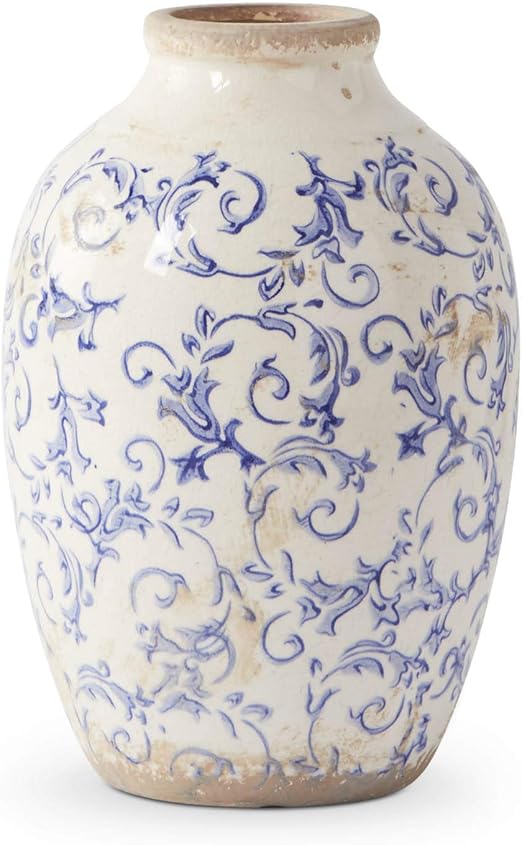 Amazon Com Vintage Old World Blue And White Ceramic Vase Ancient