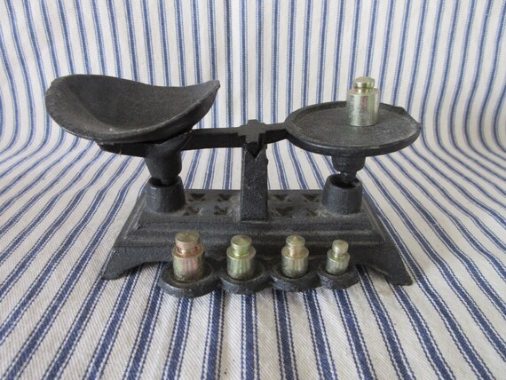 Miniature Antique Cast Iron Balance Scale W 5 Weights Etsy