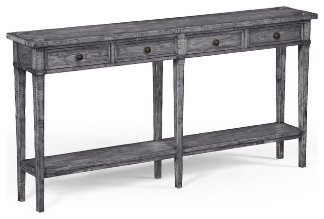 Antique Dark Gray 4 Drawer Console Transitional Console Tables