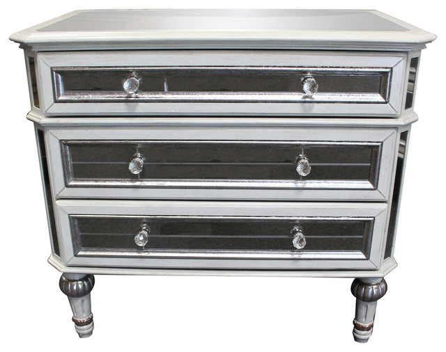 Emory Antique Cream With Mirrored 3 Drawer Nightstand