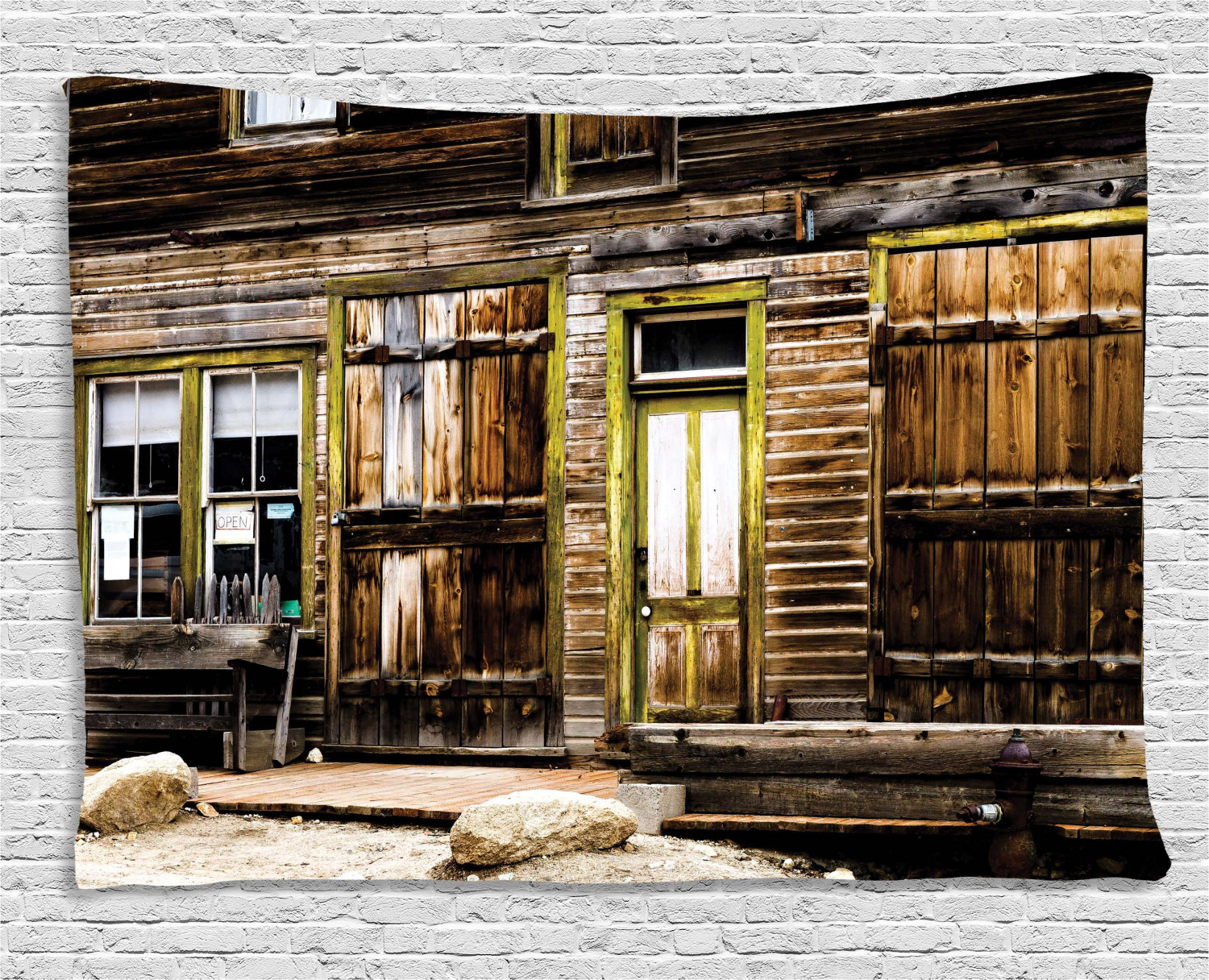 Rustic Decor Tapestry Old Wooden Plank House With Antique Door
