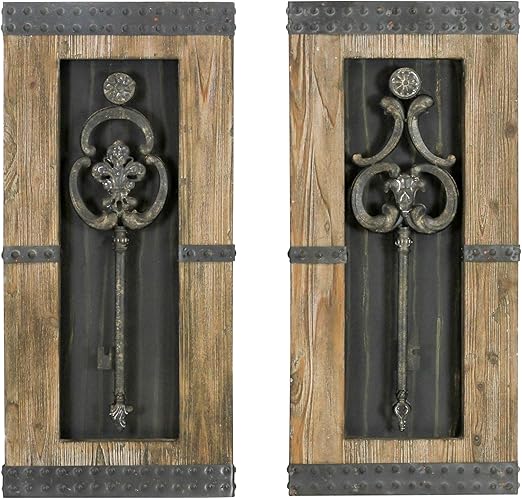 Amazon Com Antique Key Wood Wall Decor Set Of 2 Home Kitchen