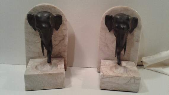 Bronze Marble Antique Elephant Bookends Art Deco Etsy