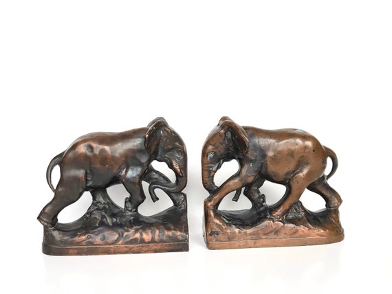 Antique Elephant Bookends Vintage Library Decor Elephant Etsy
