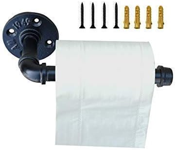Tlbtek Rustic Industrial Pipe Toilet Paper Holder Black Iron Farmhouse Paper Towel Holder Vintage Diy Style Pipe Roll Tissue Holder Heavy Duty With Hardware For