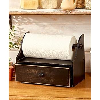 Antique Black Rustic Primitive Farmhouse Paper Towel Holder W Storage Kitchen Spaar Org Pe