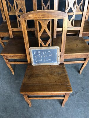 1880 Antique French Dining Chairs Set 6 Brittany Carved Chestnut