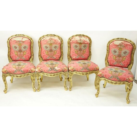 Set Of 4 Gilt Antique French Dining Chairs Fabric Craved Legs Etsy