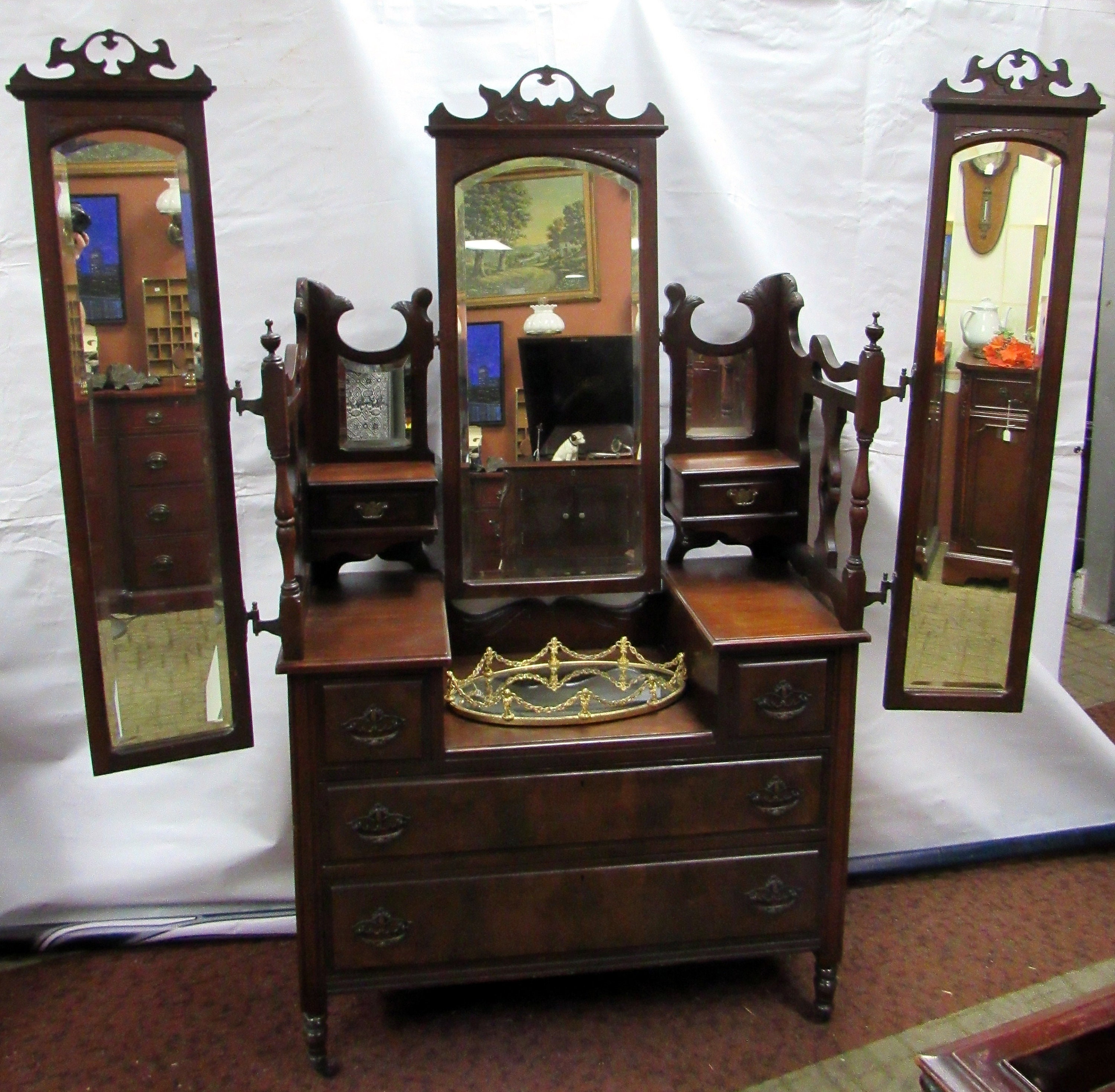 Victorian Vanity With Triple Mirrors