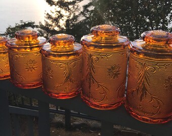 Vintage Glass Canisters 1960s Amber Glass Mid Century Canister
