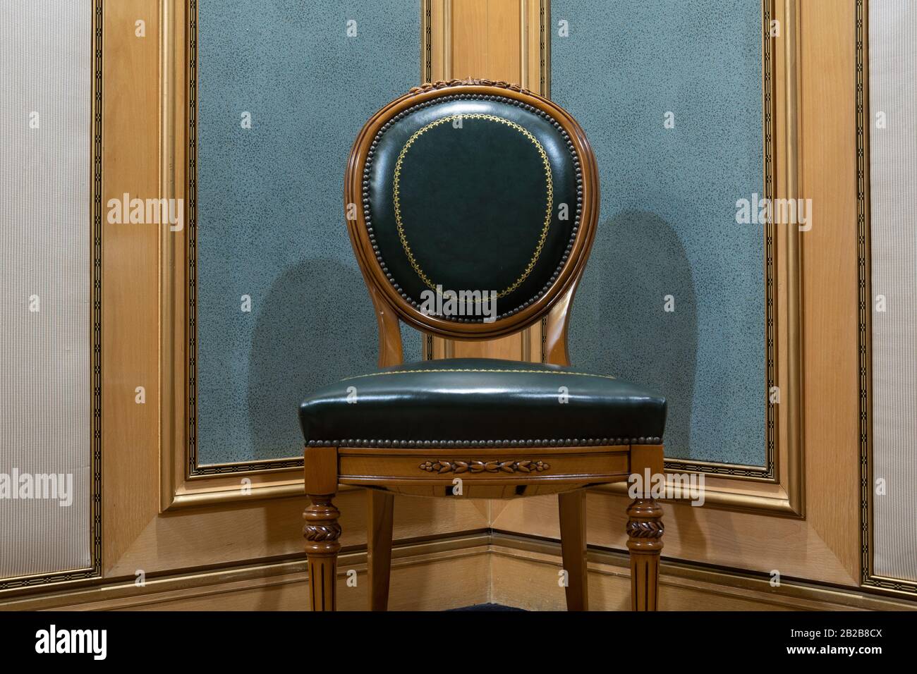 Classical Antique Green Leather Chair In Old Room Old Luxurious