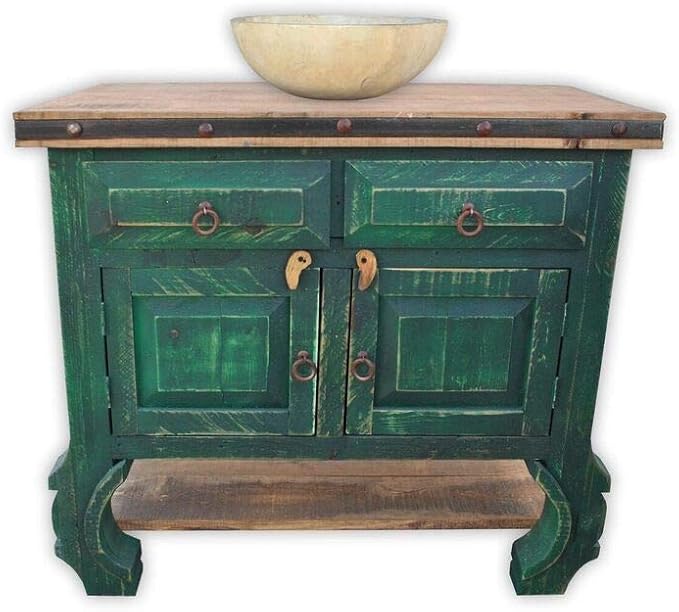 Amazon Com San Pascual 36 Rustic Vanity Vintage Green Kitchen