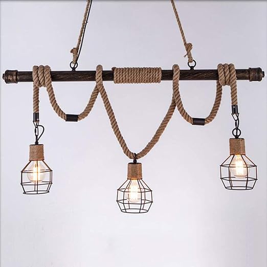 Vintage Industrial Pendant Light Metal Hemp Rope Caged Lightings