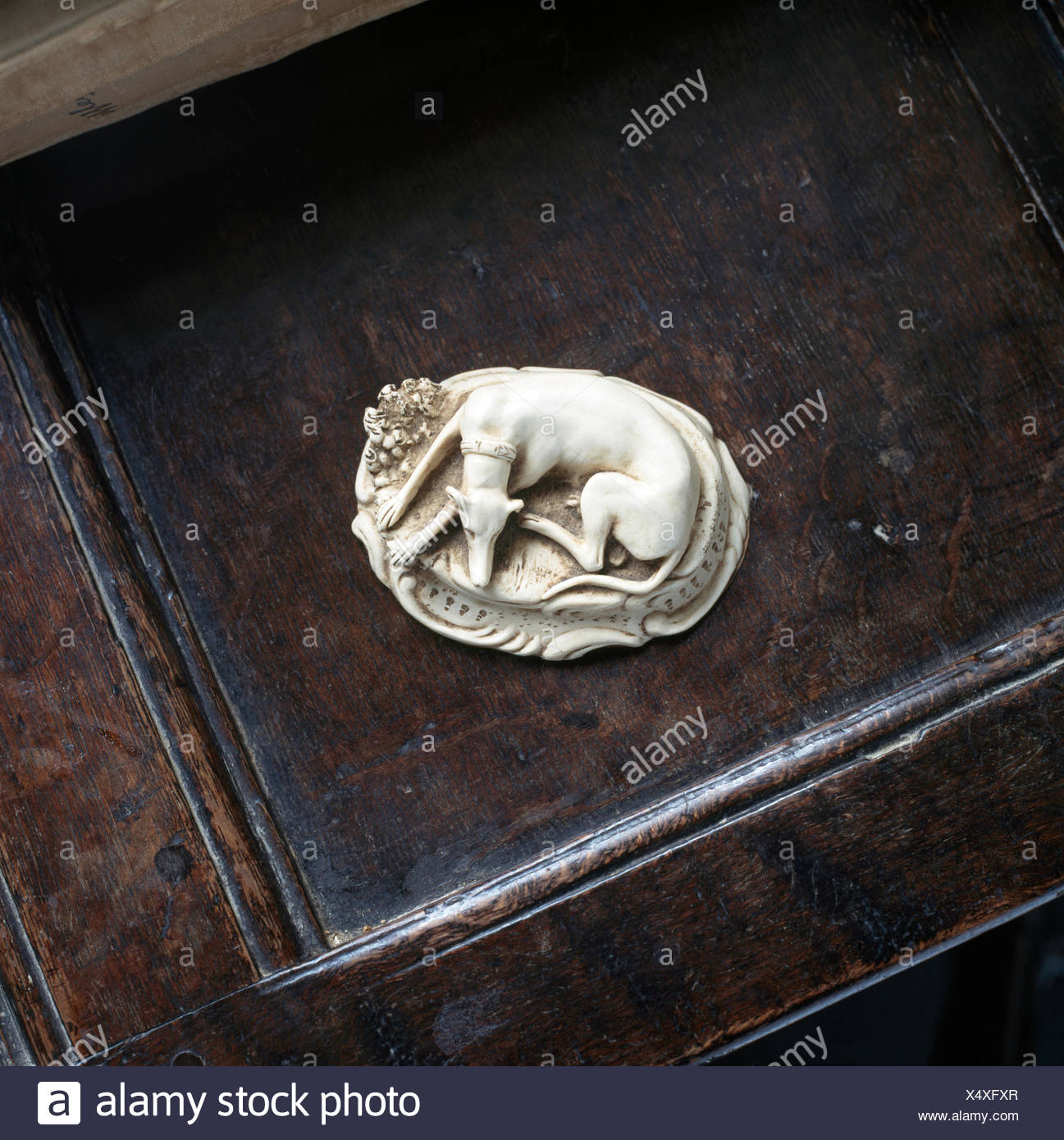 Close Up Of An Antique Carved Ivory Ornament Of A Sleeping Dog On