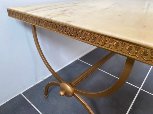 Vintage Ivory Marble And Matt Gold Metal Coffee Table 1960s For