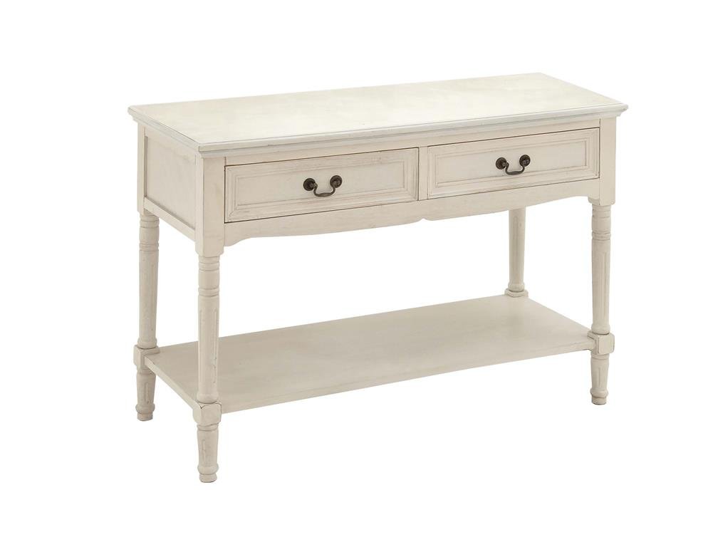 Litton Lane Distressed Antique Ivory 2 Drawer Console Table 96211