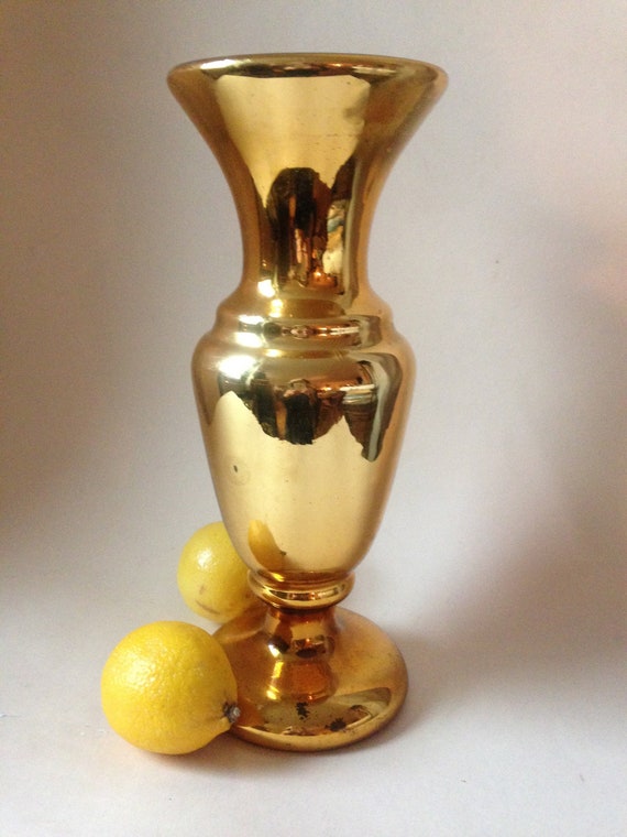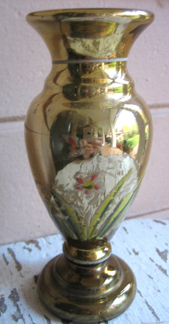 Vintage Gold Mercury Glass Vase Handpainted Etsy