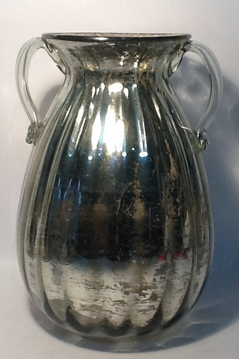 Vintage Silver Mercury Glass Double Handle Large Flower Vase