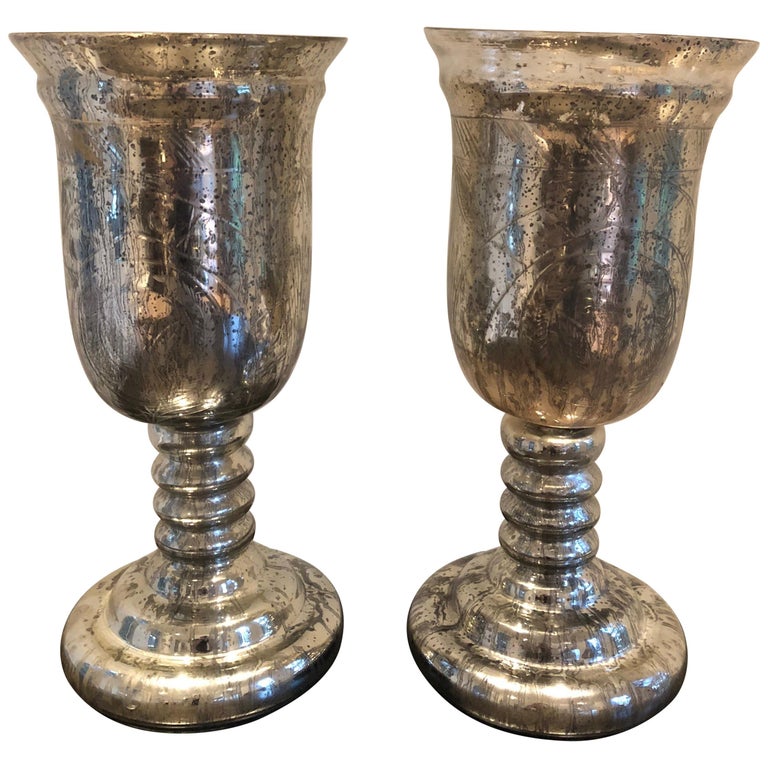 Large Pair Of Antique Mercury Glass Hurricanes For Sale At 1stdibs