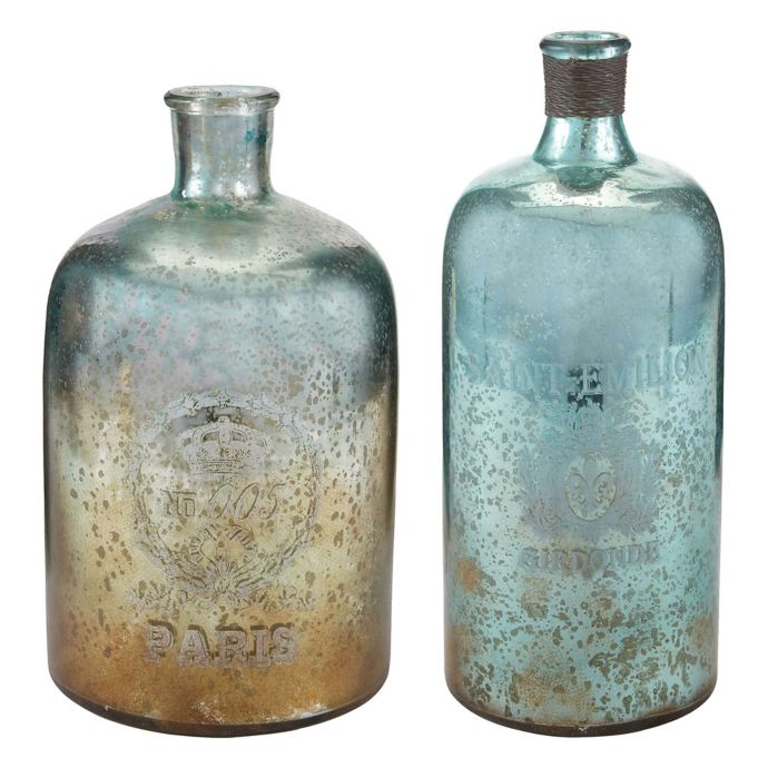 Sterling Industries Antique Mercury Glass Bottle In Aqua Bed