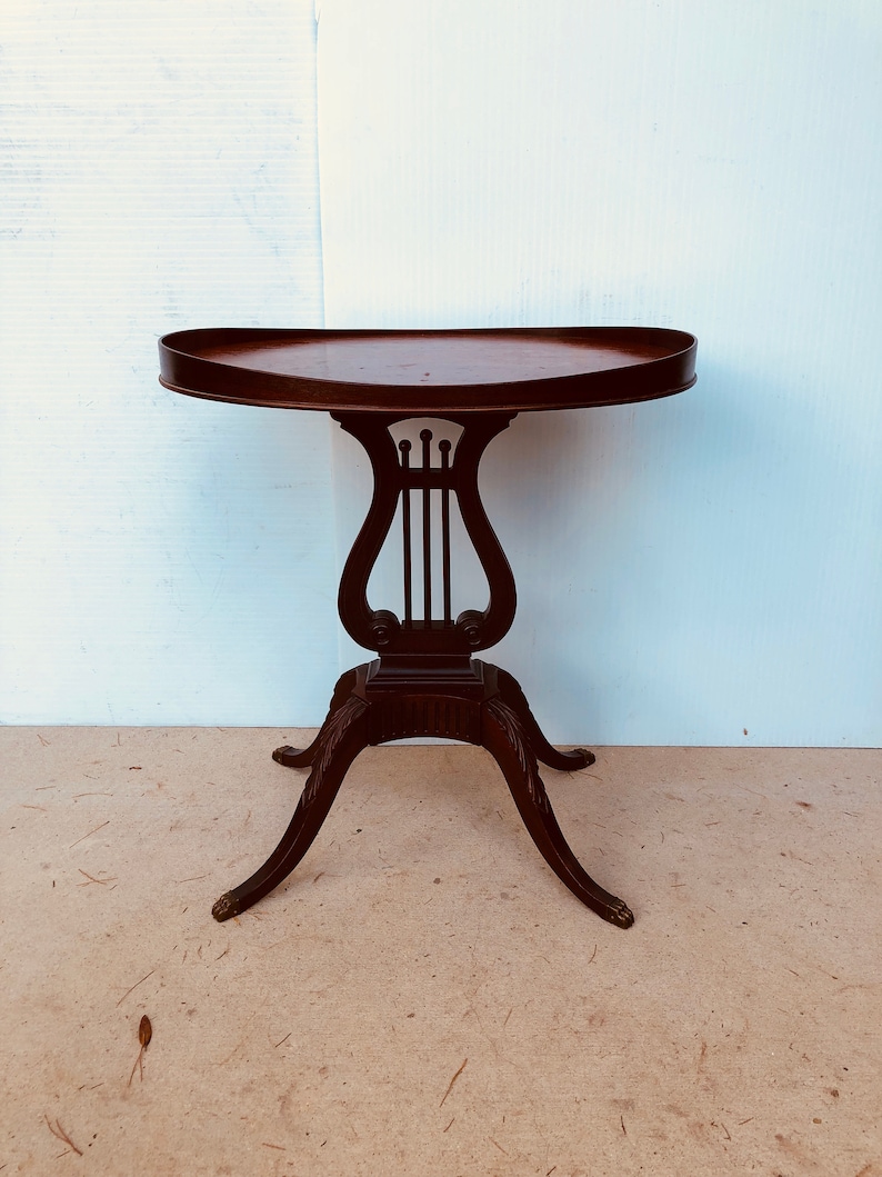 Antique Mersman Table1940s Mahogany Oval Lyre Base Side Table Etsy