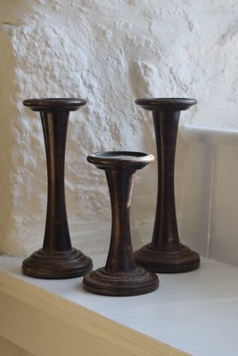 Antique Beech Pillar Candleholders Set Of 3 For Sale At Pamono
