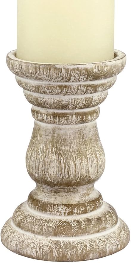 Amazon Com Stonebriar Antique White Wooden Pillar Candle Holder