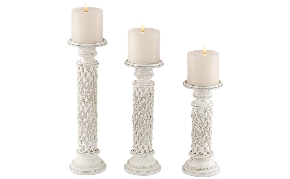 Albans Antique White Pillar Candle Holder Set Of 3 St