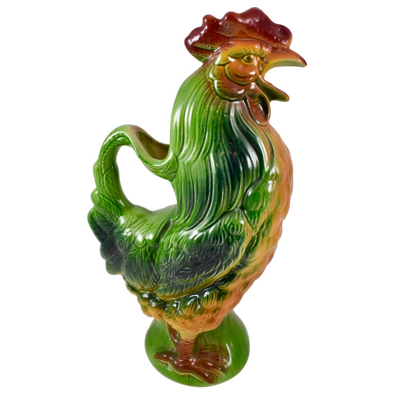 Antique French Barbotine Majolica Rooster Pitcher By Petitbrocante