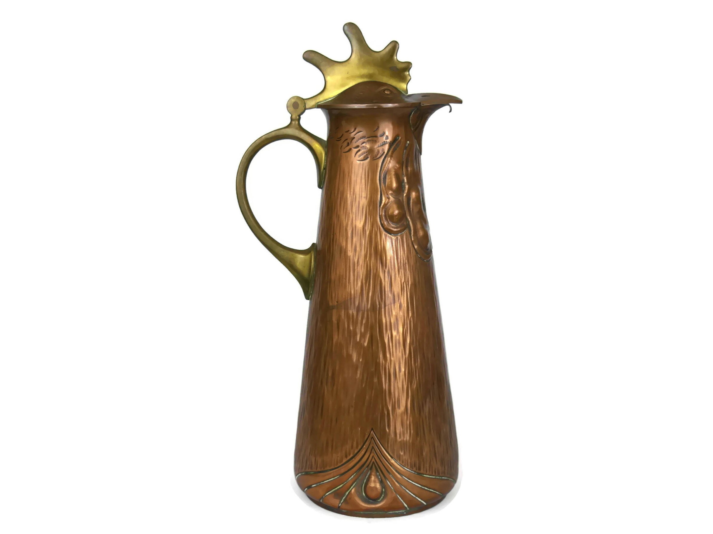 Art Nouveau Copper Rooster Pitcher Antique German Wmf