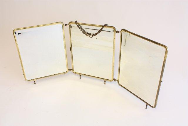 19th C Trifold Vanity Brass Framed Vanity Mirror
