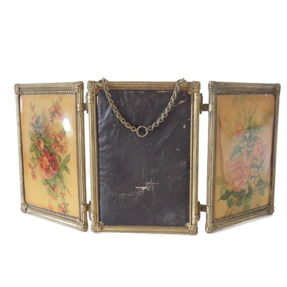 Victorian Tri Fold Vanity Mirror Travel Vanity With Floral Etsy