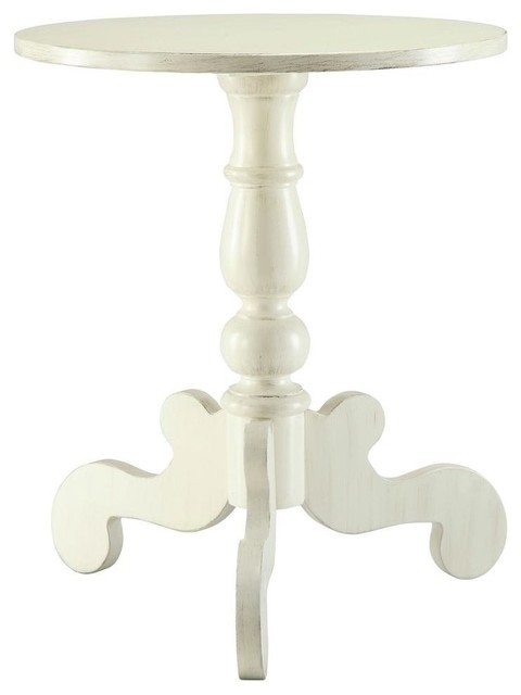 Shop Lacy Antique White Finish Wooden Round Side Table On Sale